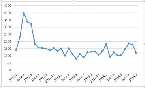 2. The number of new illegal wildlife products observed by TRAFFIC online fell dramatically, as did the total number of such advertisements: In January 2012, TRAFFIC discovered almost 30,000 advertisements for five illegal wildlife products on 15 websites then surveyed. This rose to more than 50,000 in the next two months but dropped again in April 2012 to around 30,000 after TRAFFIC contacted and shared the monitoring results with website managers, several of whom immediately deleted the identified advertisements.