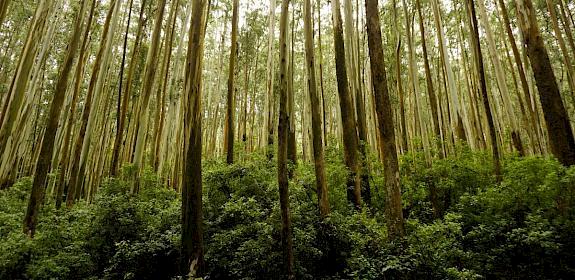Mountain gorilla Gorilla beringei beringei silverback watching through forest, Virunga Mountains © naturepl.com / Andy Rouse / WWF