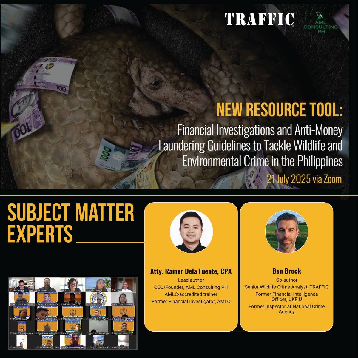 The guide is an output under the project Taking Charge: Strengthening Criminal Justice Response to Wildlife Crime in the Philippines generously funded by the United States Department of State, Bureau of International Narcotics and Law Enforcement Affairs (INL). The webinar was also supported by an anonymous donor.