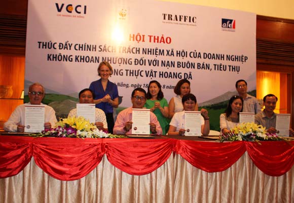 Continuing a strong partnership to enhance the capacity for Vietnamese businesses to eliminate illegal wildlife trade, the workshop was held in Da Nang by TRAFFIC and the Da Nang Branch of the Vietnam Chamber of Commerce and Industry (VCCI). The training was attended by representatives from Furama Resort, Forest Products Export JSC of Quang Nam, the Da Nang Branch of Kien Long Commercial Joint Stock Bank, Hoa Tho Textile – Garment JSC, Vietnam Travel Mart JSC and Saigon Ship JSC.