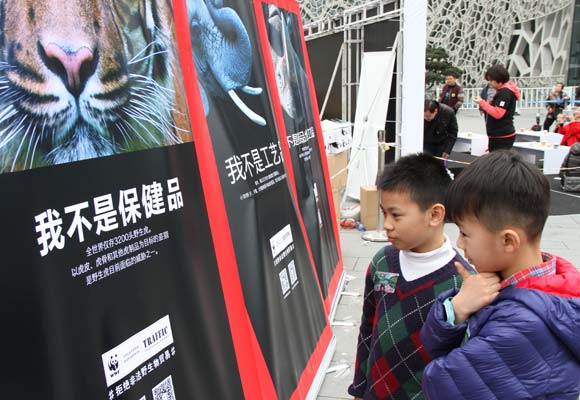 To echo the Shanghai Earth Hour events, TRAFFIC also took part in a “Beautiful Africa” photography exhibition in the Enjoy-Art Museum in Beijing’s 798 art district, which was principally organized by the Embassies of South Africa, Namibia and Kenya. TRAFFIC’s targeted communication materials on “Refusing illegal wildlife products” were distributed to those visiting the Museum.